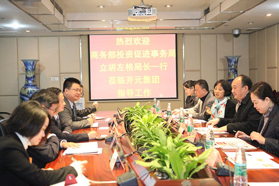 2013年11月20日上午,商務(wù)部投資促進(jìn)事務(wù)局副局長立胡左格一行在省商務(wù)廳對外經(jīng)濟(jì)合作處副處長黃小玲的陪同下,到集團(tuán)考察調(diào)研投資促進(jìn)工作,了解企業(yè)走出去的情況。集團(tuán)董事、財(cái)務(wù)總監(jiān)杜勇首先感謝各級(jí)商務(wù)部門對公司的大力支持與幫助,然后介紹了集團(tuán)發(fā)展情況、老撾鉀鹽項(xiàng)目建設(shè)與生產(chǎn)經(jīng)營情況及為老撾當(dāng)?shù)亟?jīng)濟(jì)社會(huì)全面發(fā)展所做的工作。立胡左格副局長對集團(tuán)的發(fā)展和老撾項(xiàng)目取得的成績贊不絕口。他指出,開元集團(tuán)2006年就走出去,很有戰(zhàn)略眼光,為我國企業(yè)走出去積累了豐富的經(jīng)驗(yàn)。企業(yè)爭取中外政府、金融機(jī)構(gòu)、老撾當(dāng)?shù)孛癖姷闹С肿サ搅岁P(guān)鍵,做得很好。他表示,商務(wù)部門將一如既往地支持企業(yè)走出去更好發(fā)展。鼓勵(lì)開元集團(tuán)在老撾中資企業(yè)中發(fā)揮更大作用。