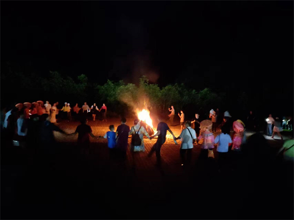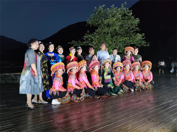 夜幕下的篝火晚會,把整臺晚會推到了高潮,考察團團員,和當地彝族,傈僳族居民一起手牽手載歌載舞,大手牽小手,架起了一道友誼的彩虹,轉眼間,兩個多小時的晚會即將結束,大家依依不捨,短暫一天海花溝真實的體驗 已經讓一些人的心留在了海花溝,讓更多人的心涌動在海花溝……