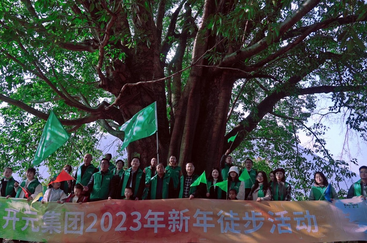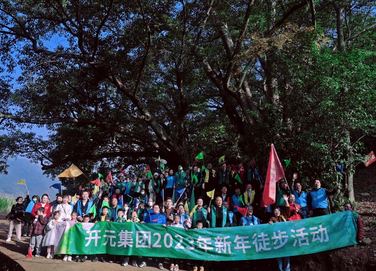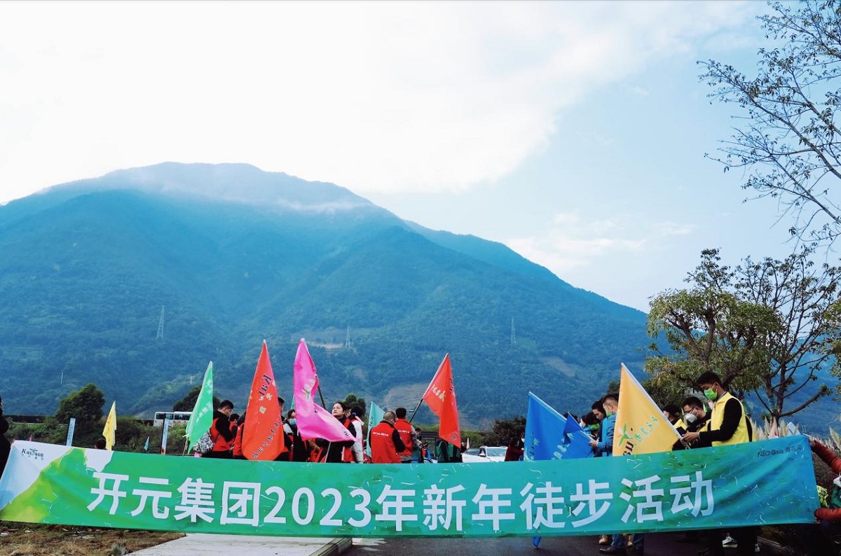 新年徒步活動于?;蠝峡诔霭l,200余人的徒步隊伍彩旗招展,整裝待發。