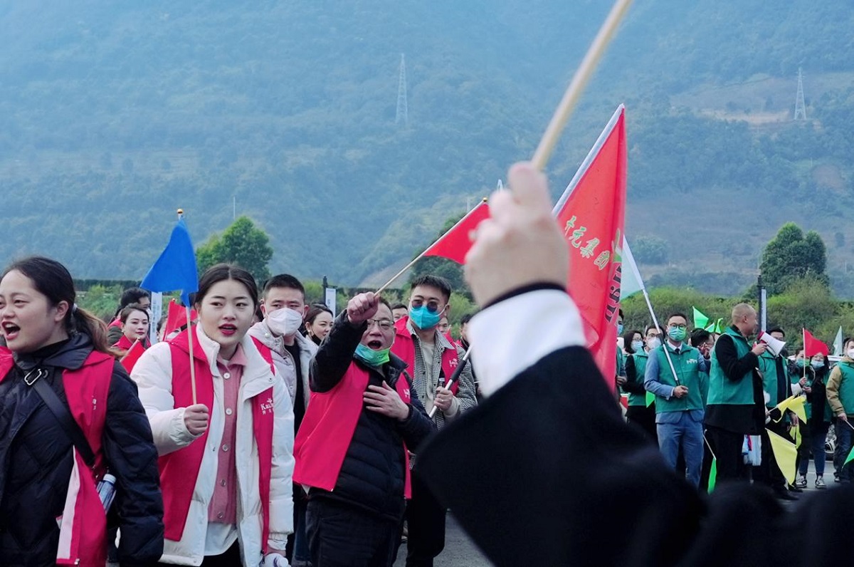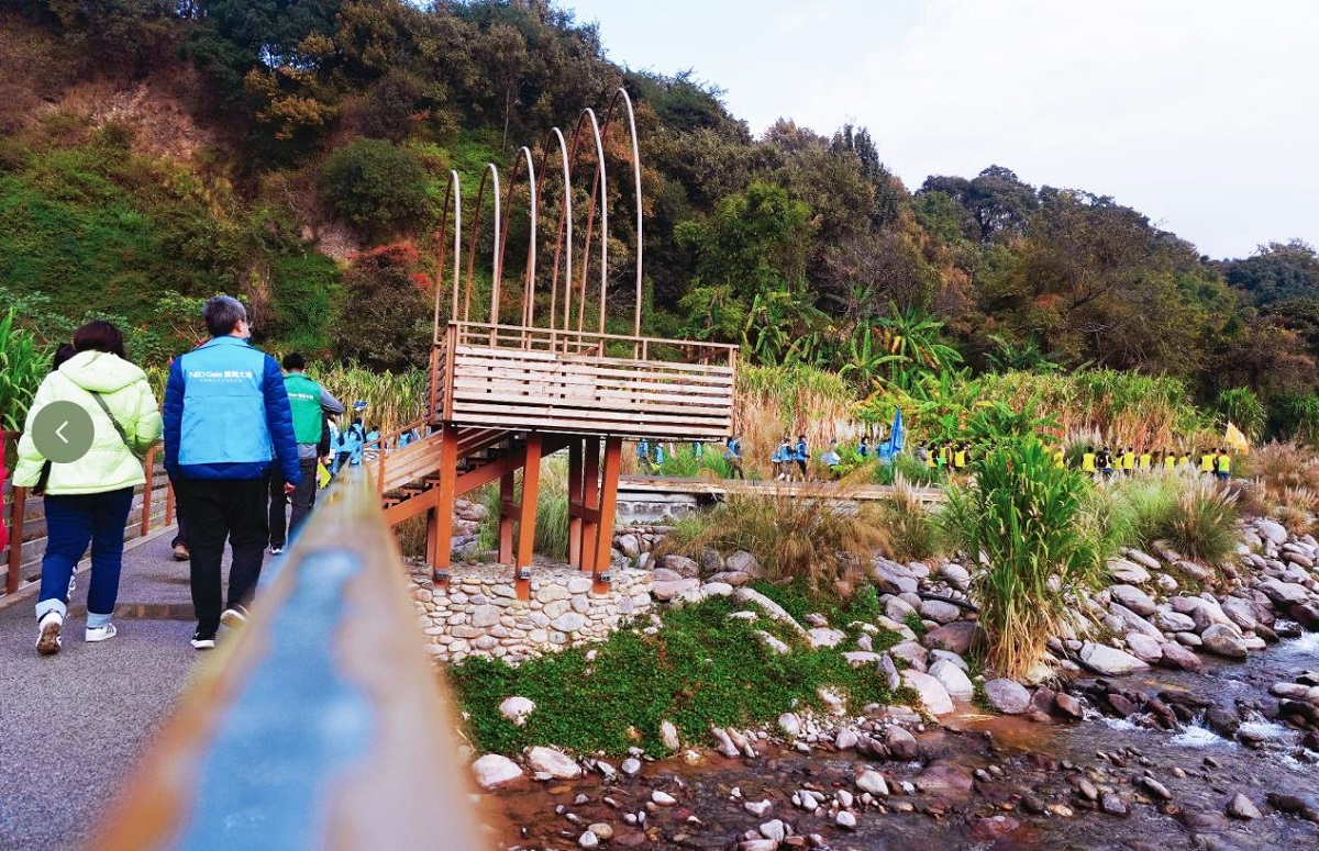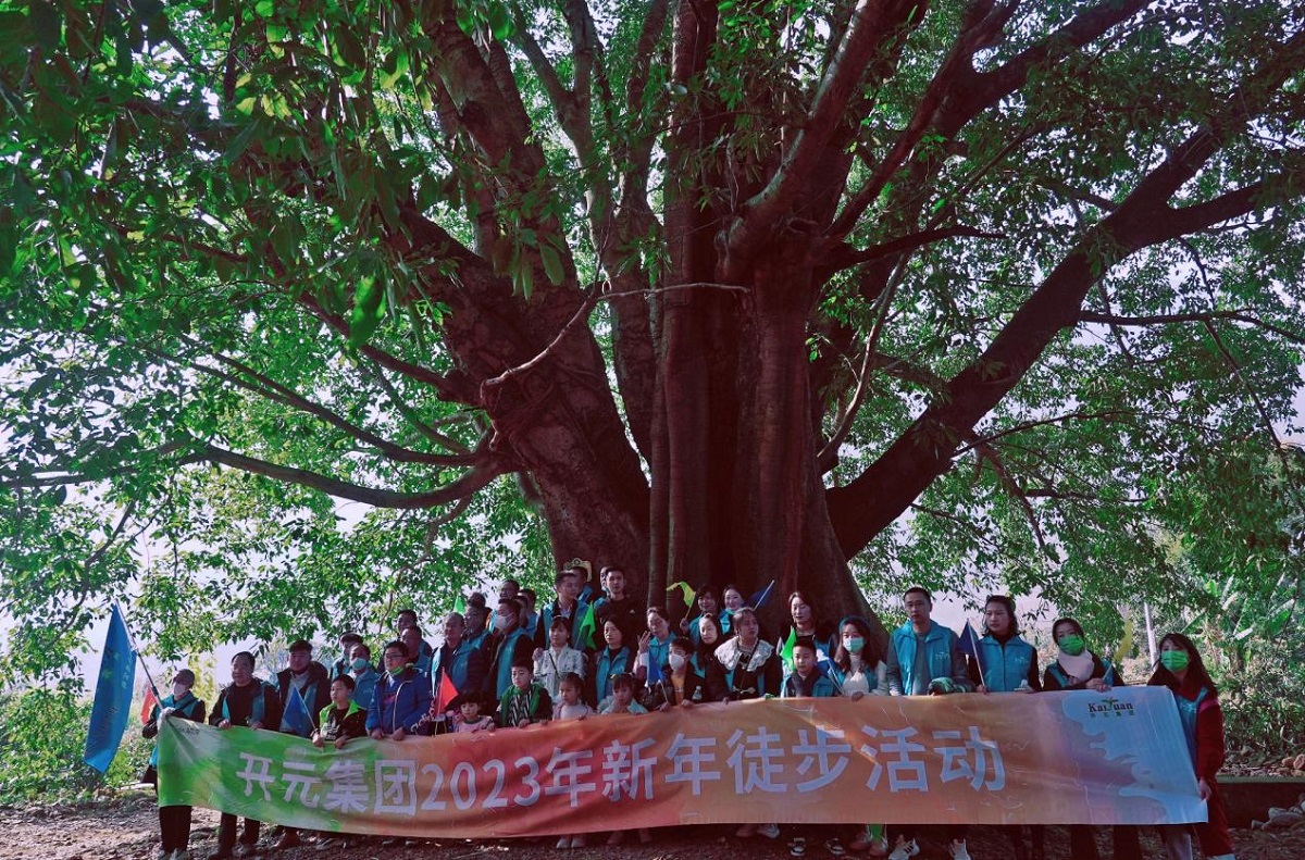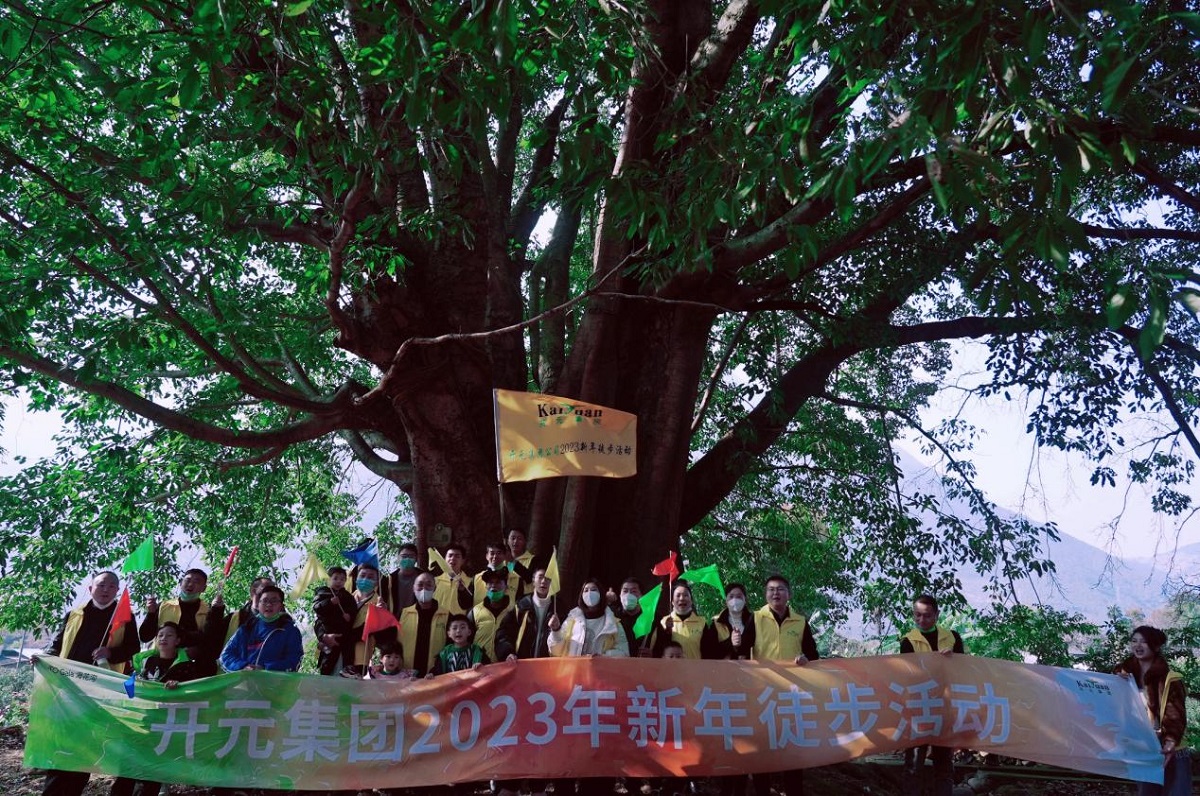 新年徒步活動于?;蠝峡诔霭l,200余人的徒步隊伍彩旗招展,整裝待發。